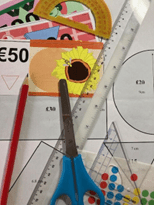 | High income country | 2 pairs of scissors; 2 rulers; 1 compass; 1 set square (the exact size of the large triangular shape); 1 protractor (the exact size of the semi-circular shape); 2 pencils; 1 sheet of A4 paper; 6 × £100 notes |